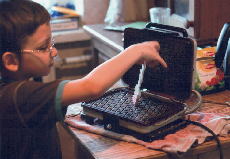На фото Антону 4 года. Вафельница раскалена.