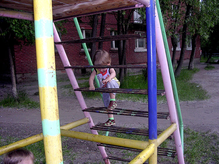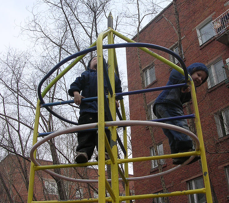 Дети (все дети) обожают лазить на верхотуры. Всегда. Тут им 2 и 9. Такие советские лазилки-ракеты, наверное, знакомы всем моим ровесникам.