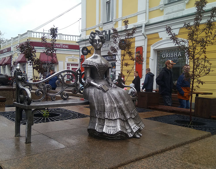 Я не знаю, что надо гуглить про Любочку. Любочка – это типичный “дух места”. Улица, на которой установлена скульптура, раньше называлась Любинский проспект. Улицу так назвали в честь жены генерал-губернатора, которая была очень красивая, любимая этим самым губернатором, и умерла совсем молоденькой. Точнее даже не так. Тут была роща. Рощу назвали “Любинской” в честь жены. А когда стали строить улицу, улицу по названию рощи назвали Любинский проспект. Ну, а затем, лет 20 назад, на улице установили скульптуру “Люба”, которая эту самую Любу изображает. Никакого портретного сходства или фактического скульптура с реальным персонажем не имеет. Люба, по преданиям, действительно любила гулять в этом месте, но тогда тут никаких лавочек не было – тут была роща. И прижизненных портретрв Любы не сохранилось.
