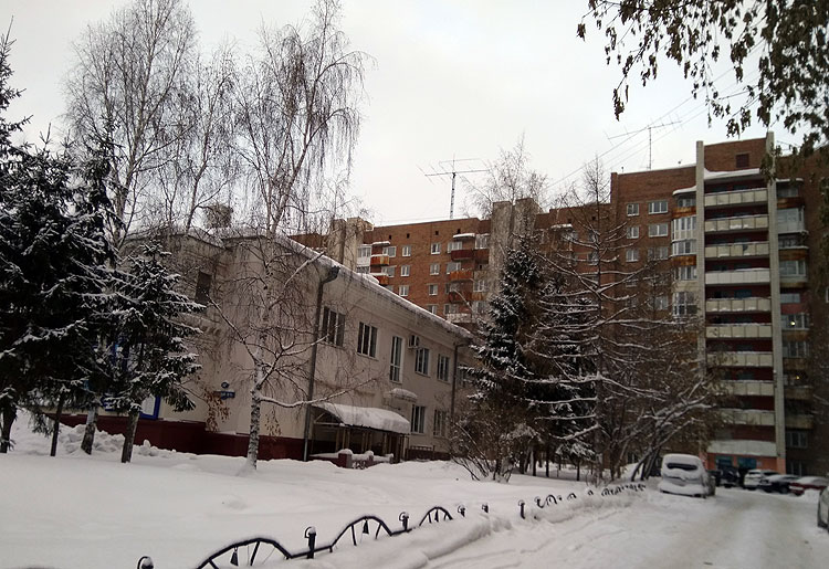 Понятно, что и до этого мы где-то жили. Но поскольку в наш дом мы переехали, когда мне было 4 года, то старый дом я совсем не помню. Есть какие-то единичные отрывочные картинки в памяти. И есть фактологическая информация, которую я знаю. Папе дали квартиру, когда он переехал из Новосибирска в Омск при открытии университета. Квартира была двухкомнатная и у нас там были крутые соседи – сплошь все профессора это же вновь открывшегося университета. И еще я там с какой-то огромной собакой дружила. Что я дружила с собакой мне рассказала мама. А что собака была огромная – я отрывочными картинками помню сама. Я едва-едва ее доставала погладить по шее. Но не стоит забывать, что в этих воспоминаниях мне 2-3 года. Мне почему-то кажется, что у собаки кто-то болел из хозяев. Но это меня мало касалось, я же дружила не с хозяевами, а с собакой. Еще мама рассказывает, что мы постоянно играли в песочнице с одним известным российским режиссером (правда, я этого сама не помню, а режиссер, поди, и подавно никогда не знал). И когда я выходила гулять (по малолетству – с мамой обычно), то он всплескивал руками и говорил: “Ах, Катя!” Но сама это не помню. А очень хорошо помню, как однажды я закатила в нос маленький шарик и затруднялась дышать. И папа схватил меня в буквальном смысле слова под мышку и побежал в какую-то неотложку. Я это хорошо помню, потому что перед глазами очень красивая картинка: елочки вдоль 1 корпуса, еще маленькие совсем, зимняя ночь. Но картинка не в нормальной ориентации, а прыгает и повернута под 90 градусов – я реально в виде поленца тряслась у папы под мышкой. Мне было очень-очень красиво. Прямо на всю жизнь воспоминание именно красоты.