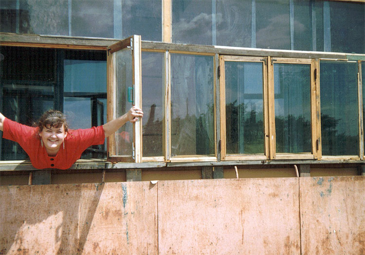 Фотографий с крыши того времени, когда мы там играли постоянно, у меня нет. Вообще, есть ровно две фотографии с крыши. Вот такая. “Ольга, сфоткай меня, как я на краю крыши стою”. Это 96 год (первый мой фотоаппарат, мыльница, которую я купила за свои деньги)