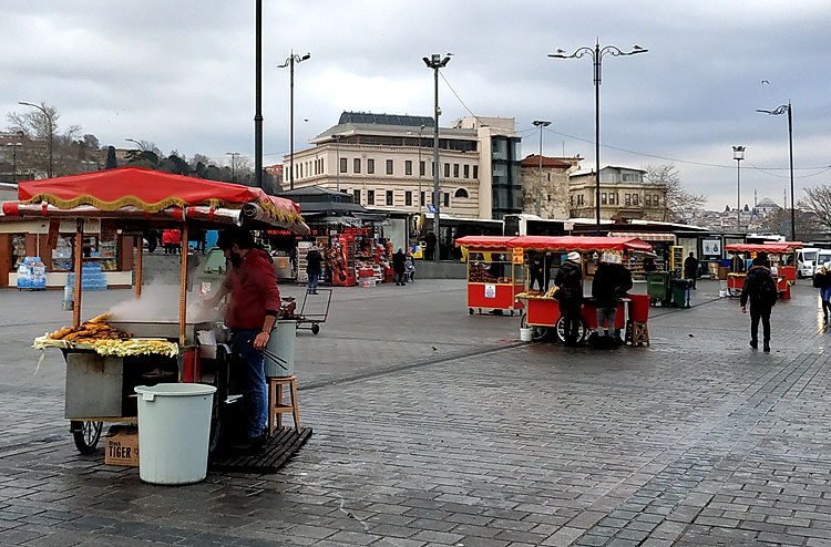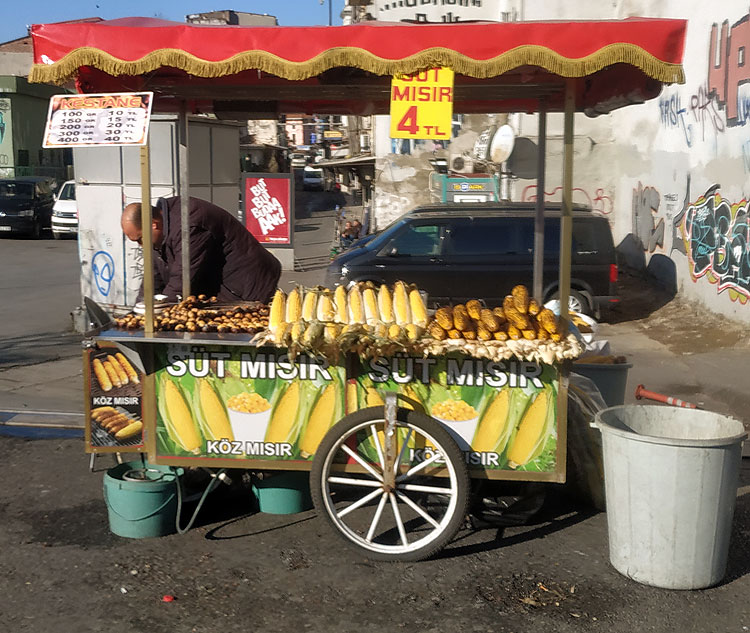 Но будут такие тележки и в нетуристических местах. Например, на крупных пересадочных узлах. Где турков явно больше, чем туристов. И возле мечетей обязательно какие-нибудь лоточники стоят. Или вообще черти где. И везде у таких тележек толкутся покупатели.