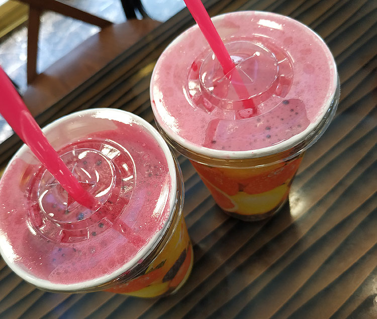 В Омске свежевыжатый гранатовый сок вам подадут только в приличном кафе и цена будет более, чем приличная. Тут гранатовый фреш кругом. В туристических местах лотки с фрешами выглядят так и давят все подряд: