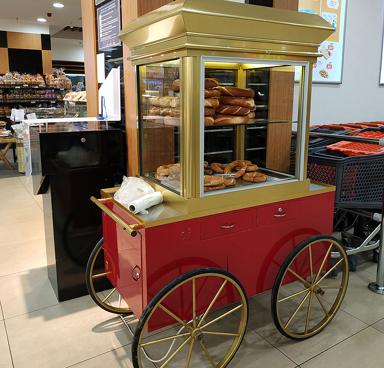 Турки настолько привыкли к вижу симита на тележке, что даже в супермаркете симиты продаются так: