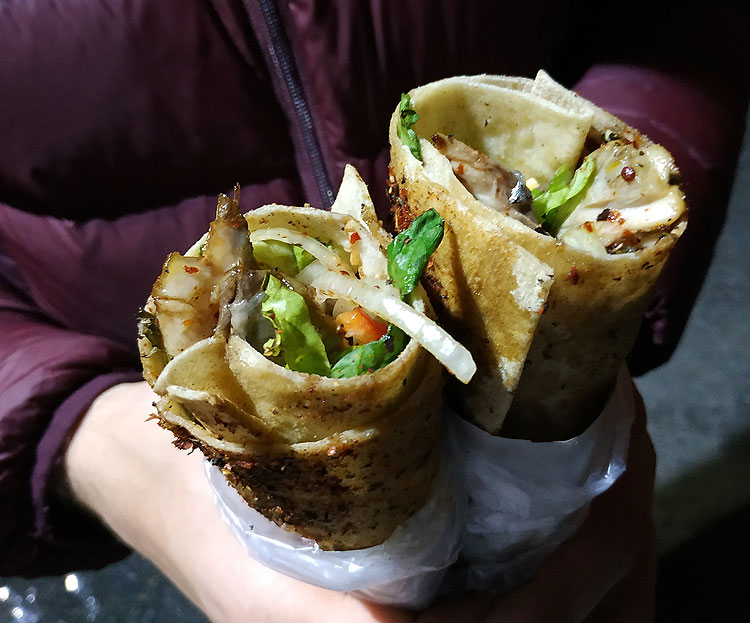Балык-дурум, вроде, и похож на шаурму. Но вот конкретно шаурму продают не как уличную еду -- а в небольших (или больших) забегаловках со столиками, кассой, тарелками и так далее. Можно, конечно, взять на вынос, никто не запрещает. Но все-таки в мой обзор уличной еды шаурма не попала.