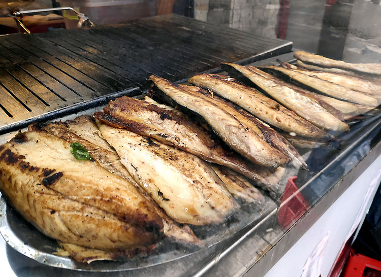 Если вы хотите искать сами, или не нашли страшного турка под галатским мостом – то надо ориентироваться на вот такие шашлычницы, возле которых разложена жареная рыба: