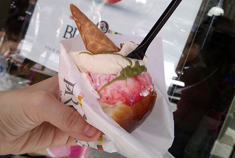 - Не то, чтобы прямо необычное блюдо – но очень необычное национальное сочетание. Мороженое на Сицилии подадут в бриоше (в сдобной булочке).