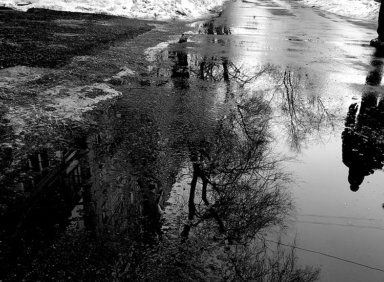 В Омске такие лужи! Днем. По утрам нет луж -- по утрам гололед))) А вообще, лужи такие, что машину захлестывает с крышей. Скорей бы настоящая весна -- а то самое грязное время года началось. >И просто картинка для привлечения внимания.