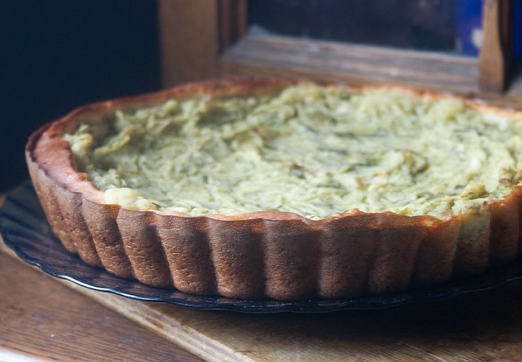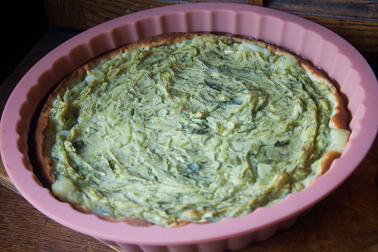 Зеленый картофельный пирог, как был в прошлых вкусных картинках, повторяла по просьбам трудящихся. Вот он, готовится в печь.