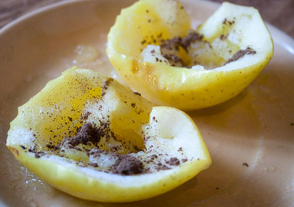 Когда так запекаешь фрукты, иногда режешь их на части. И иногда режешь даже достаточно мелко. Если сделать еще дополнительный шаг и пробить полученное блендером -- будет