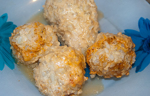 Но если просто котлетки в микро это еще не факт, что очень вкусно (традиционые жареные, наверное, вкуснее, как ни крути). То можно эти самые фрикадельки улучшить.