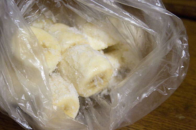 Банан, короче, порезать на кусочки, сложить в пакет заморозить.