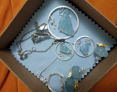 У меня вообще есть авторский комплект золота, не фабричный, сделанный ювелиром, с голубыми топазами и алмазами. И он совершенно точно небанальный и очень классный. И я его очень люблю. Только не ношу. Он так и лежит. Поэтому я просто знаю, что и любой другой хотя бы сравнимый по любимости золотой комплект будет просто лежать ))