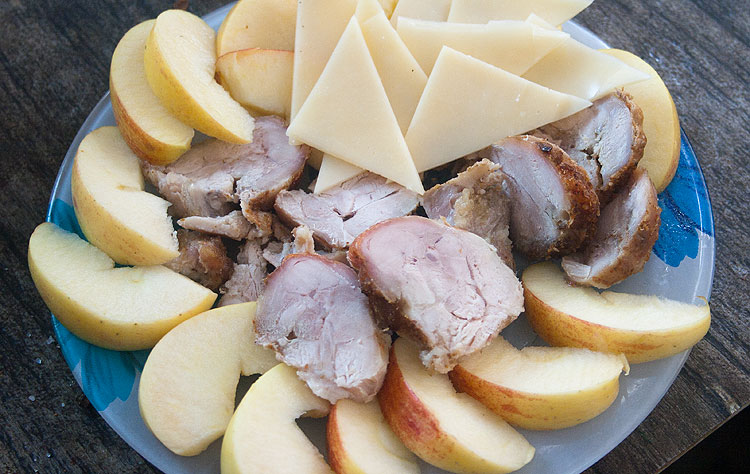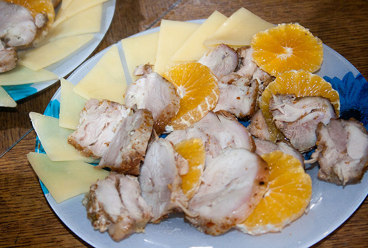 То, что осталось от куриного мяса наутро и вечером 1 января к вину подавалось вот так. Я всегда так подаю курицу на второй день. Обожаю.