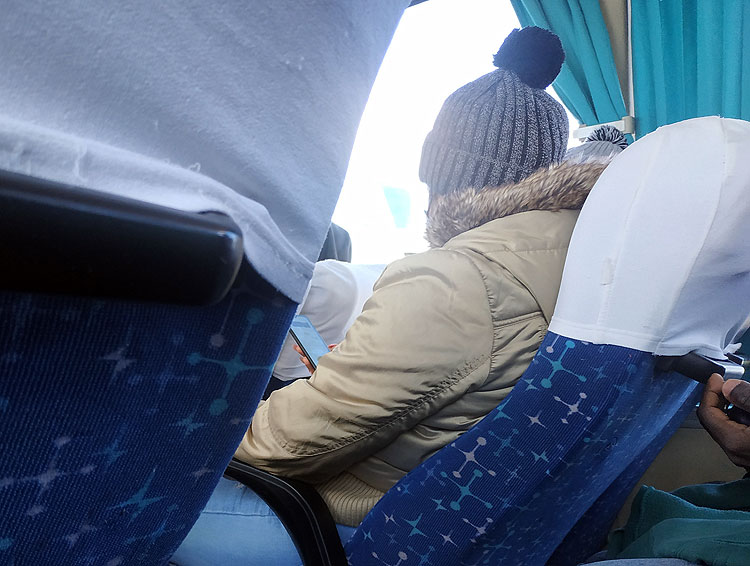 На Кубе круглый год жарко. Сами кубинцы говорят, что у них есть зима, 2 месяца в году: январь и февраль. Летом жарче. И летом идут дожди. "Сухой сезон" на Кубе -- с ноября по апрель. Но зимой бывает холодно. Холодно в понимании кубнцев означает, что нельзя купаться. Когда было +23 градуса, кубинцы нам сказали: "Сегодня очень холодно". При +23 градусах кубинцы надевают пуховик и шерстяную шапку. Вот, фото сделано в автобусе, поэтому странное. Но даже в автобусе (где теплее, чем +23 на улице, конечно, и совершенно нет ветра) кубинцы одеты так:
