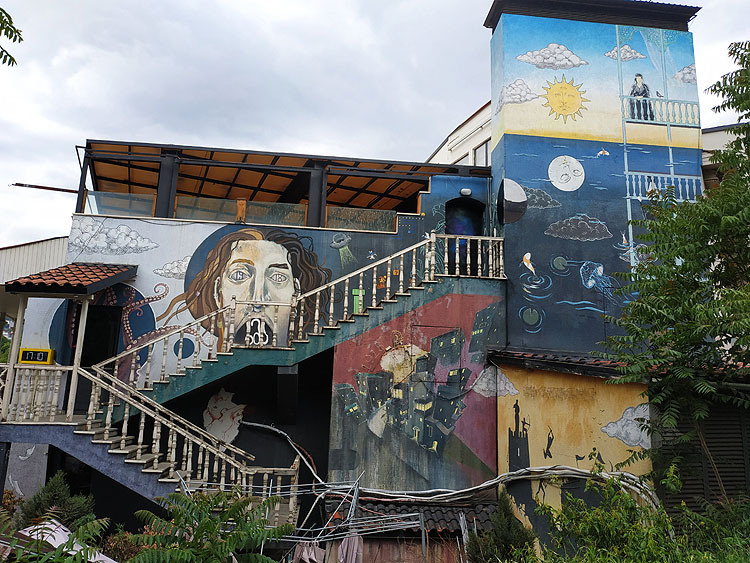 Периодически Тбилиси хочется сравнить со Стамбулом. Тбилиси более плоский, но в целом рельеф похож. Как и в Стамбуле, в Тбилиси много заброса и разрушенных зданий. Как и в Стамбуле, есть качественное граффити, много. Как и в Стамбуле, заброшенные разрушенные здания соседствуют с новенькими, дорогими, с иголочки.