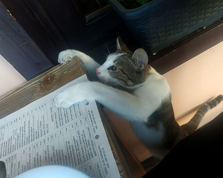 В Грузии много бродячих котов и много бродячих собак. Даже не знаю, кого больше. Собаки все с такой штукой на ухе. По улицам, соответственно, много собачьих экскрементов. Я думала, в Сербии много! Куда там. В Сербии, считай, чисто было (ну, и собаки тут пряом сильно крупнее, чем в Сербии).
