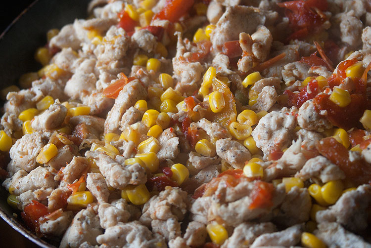 Почти как фахитос, но в последний момент психанула и насыпала туда еще кукурузы.