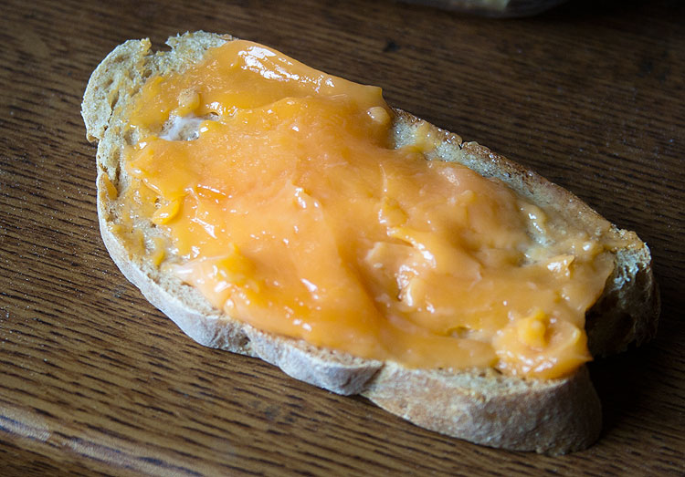 Нет, в яичницу он тоже пойдет – и будет самая обычная нормальная яичница. Но еще его можно просто как масло намазать на хлеб. (Мне вкуснее – сверху посолить, но можно ничего не добавлять, а можно наоборот добавить щепотку сахара).