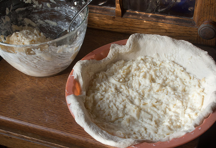 Сверху выкладываем оставшуюся сырную начинку.
