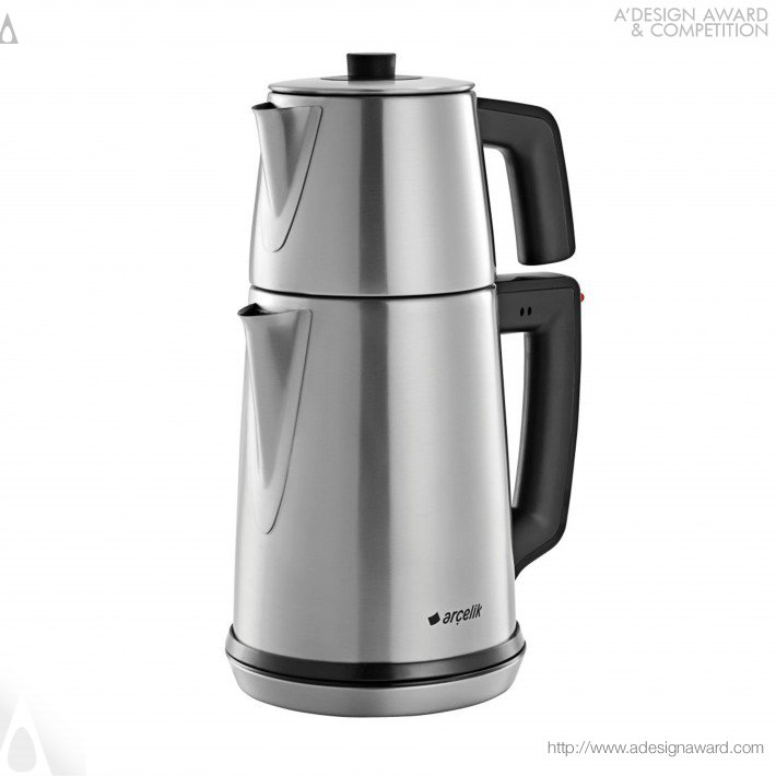 Внизу – обычный электрический чайник. Сверху мы бы сказали “заварник”. Обычная констукция с ситечком. Мы дома обычно завариваем когда чай в заварнике (в современности) – заварник стоит на столе. У турков положено так. Заварник стоит на чайнике, а чайник переходит в режим медленного кипения/поддержания температуры 100 градусов. И поэтому заварка всегда горячая.