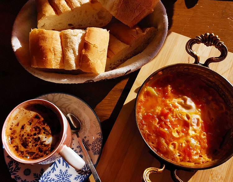 Можно позавтракать так (менемен). Менемен – это просто яичница с помидорами и перцами.