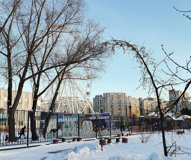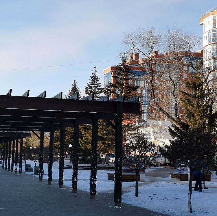 Первый снег в Омске всегда выпадает еще осенью, примерно в самых первых числах октября, когда явно еще не зима. Бывает так, что после первого снега еще +15..17..20. Но начало зимы всегда малоснежное. На этих первых фотках – начало декабря, а снега мало.