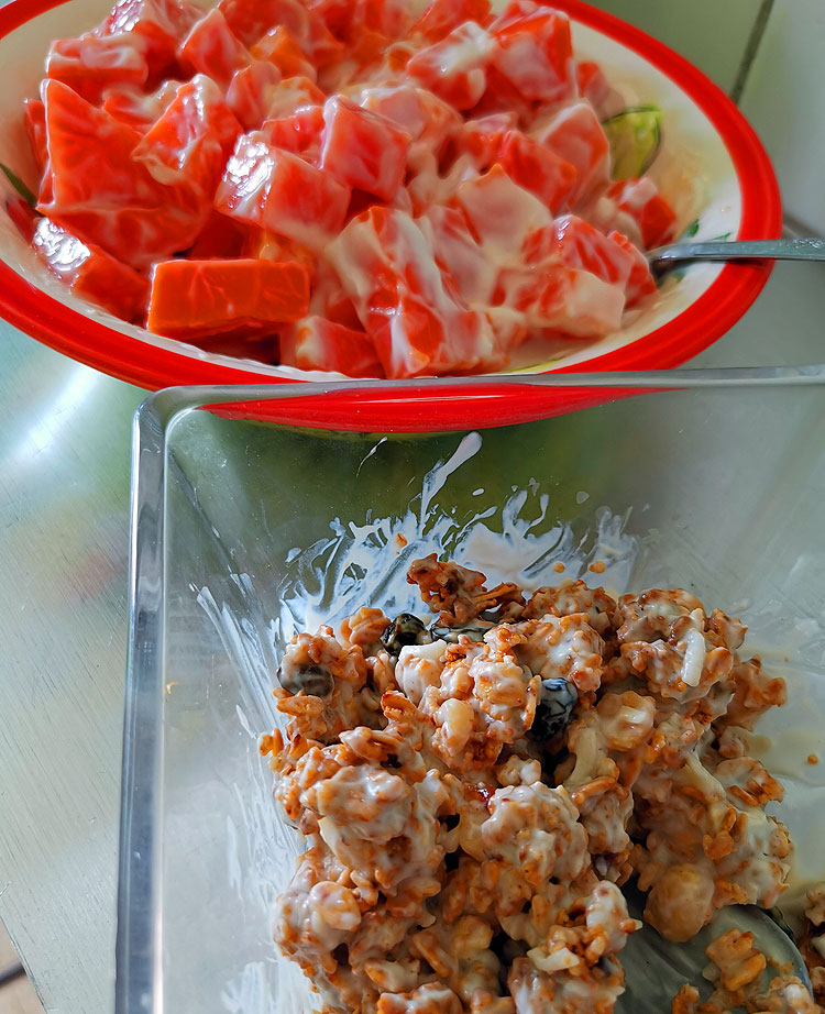 Гранола и салат из папайи.