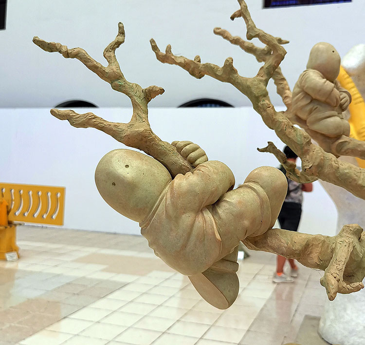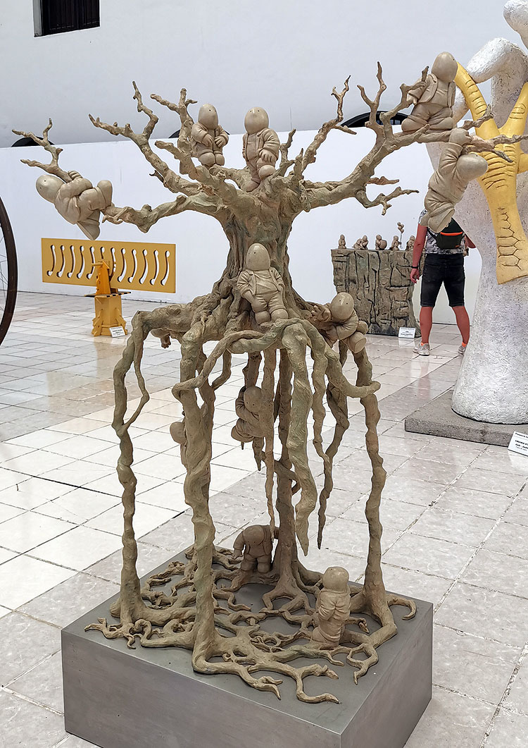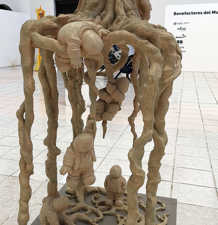 Работа называется "Buenas intenciones" (Благие намерения). Де ла Сьерра -- еще совсем не старый художник, но в Мексике достаточно известен, насколько я понимаю. Стиль у де ла Сьерра тоже особый. Его мультяшные персонажи всегда рассказывают какую-то концептуально тяжелую историю. Пара деталей скульптуры.