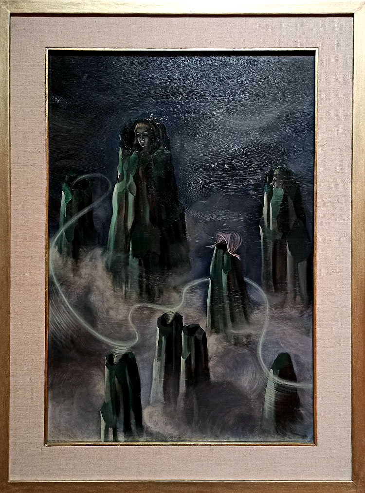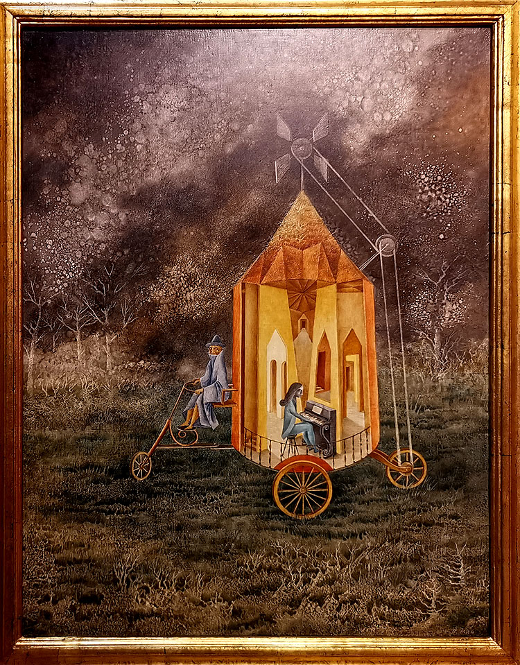 Стилем Варо считается сюрреалистическая живопись маслом по меди, что дает картинам совершенно невероятную глубину и действительно мистическое мерцание. Я опять должна была написать, что у художницы очень особый стиль, который ни с чем не спутаешь. Но, благодаря этому стилю, Варо – одна из самых подделываемых художников в мире! Из-за этого ей пришлось выпустить каталог своих работ, чтобы все точно знали, где ее работы, а где – подделки ))) Каталог мы тоже видели )))