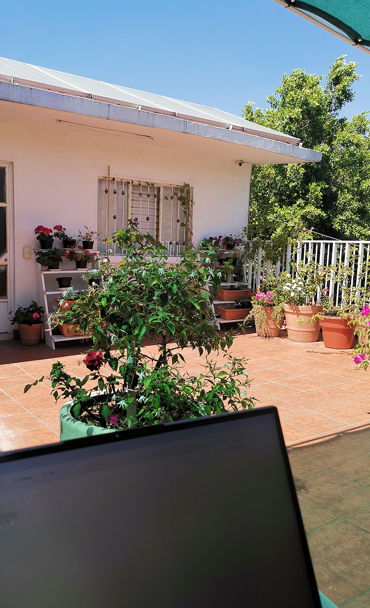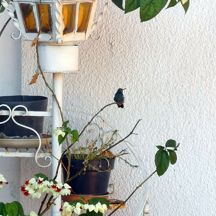 Зато в Гвадалахаре у меня рабочее место на террасе. За террасой растут манговые деревья, на которых зреют манго (еще дубовые, не сезон!) На террасу постоянно прилетают колибри. Это очень весело.