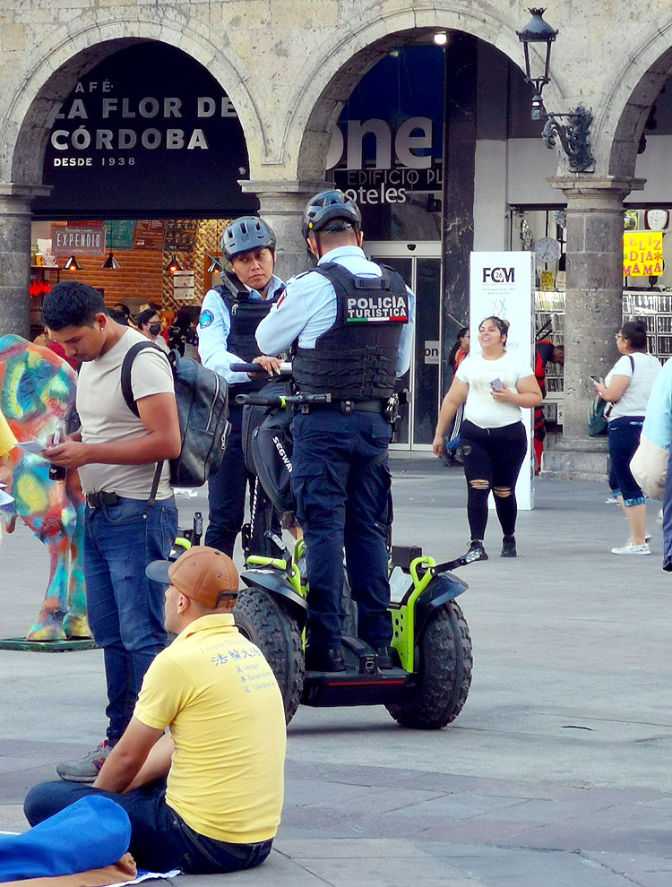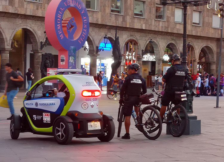 Надо разбавить скульптуры наблюдениями за живыми людьми. Вот, например, полиция. В каждом штате полиция в Мексике выглядит как-то особо. В Гвадалахаре полиция милая. На великах, на электрокарах, на сегвеях. А вот что одинакового: во всех штатах в полиции много женщин. В разных подразделениях, не только на сегвеях катать, с автоматами тоже ходят – только я тех, что с автоматами, стесняюсь фоткать.