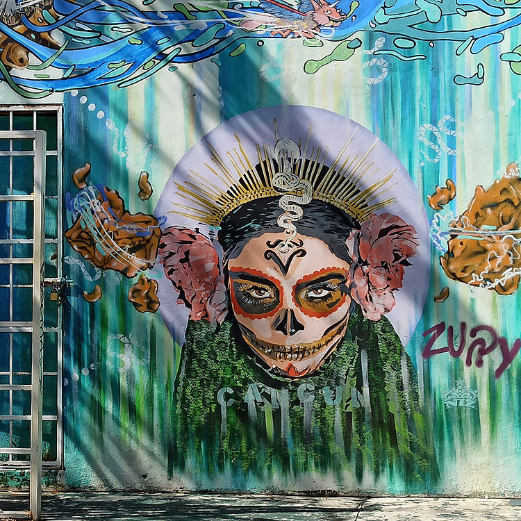 В Канкуне вообще все очень хорошо с граффити. Ни в каких городах Мексики, где мы успели побывать, не видели такое количество интересных граффити. Вообще, муж в своей иерархии столицу граффити Стамбул сменил на Канкун. Говорит, что лучший по граффити город вообще из всех виденных.