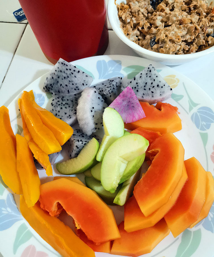 (на картинке – питайя, папайя, манго и яблоко. Как всегда – очередной завтрак).