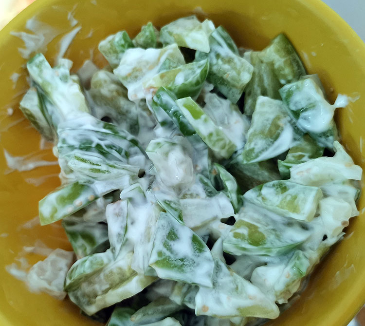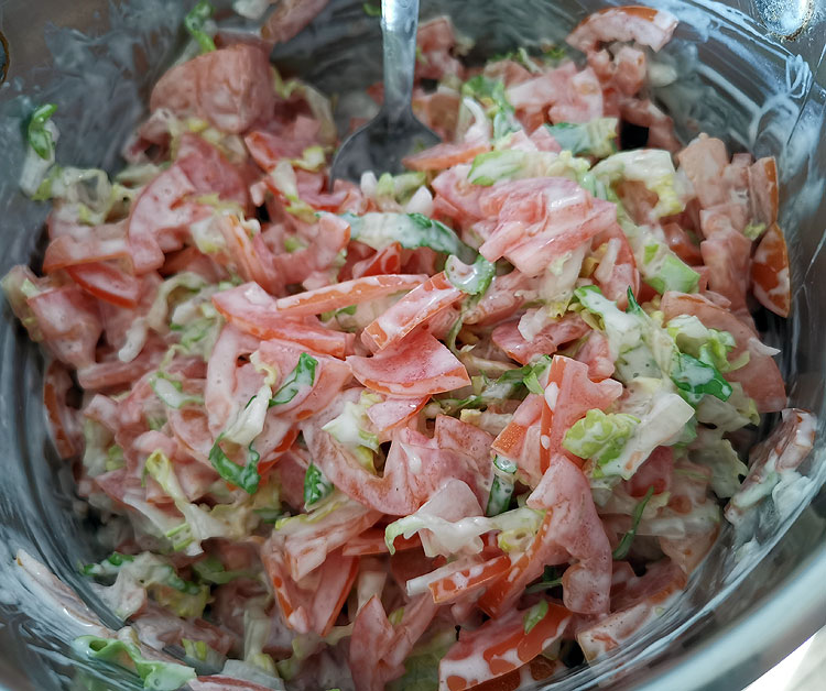 Этот салат помидор + огурец, но его мексиканскость состоит в том, что огурец – мексиканский, чайот.