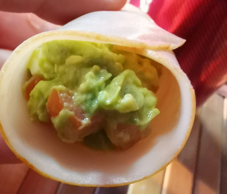 (А салат простой: гуакамоле + мелко порезанный помидор).