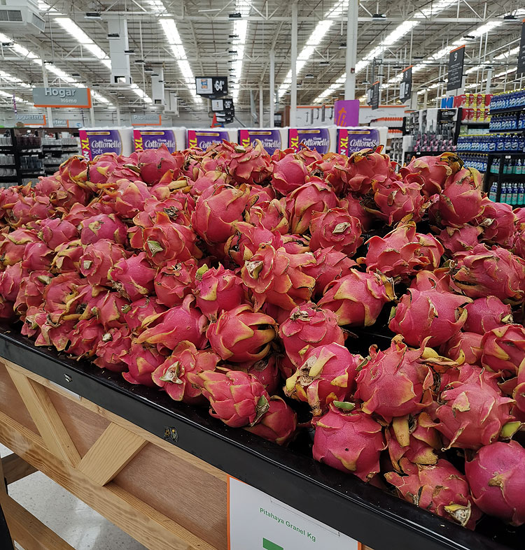 За питайей (драконим фруктом) надо в ЮВА. Там просто рай по ним. Стоит дешево, а большой, сладкий, сочный… Здесь по качеству отличный, но по цене – не дешево почему-то. Туна зато по цене овса ))) А так как по вкусу они похожи – я предпочитаю туну ))
