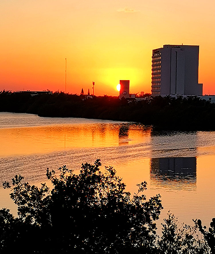 За что я люблю именно это место? Ну, во-первых, оно по пути к любимому пляжу. Во-вторых, именно тут самый красивый закат в Канкуне. От Канкуна море находится на востоке. Поэтому рассвет тут из моря, а вот закат -- в город. Однако, если правильно выбрать место -- то будет закат в лагуну. И вот эта точка -- одна из самых красивых для просмотра заката.