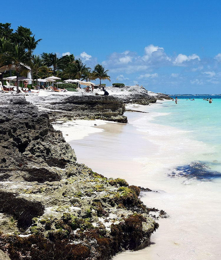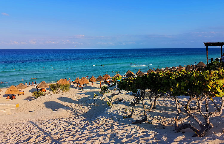 Здесь мало лодок, мало туристических развлечений (хотя немножко есть). Муж считает, что это самый красивый пляж в Канкуне.