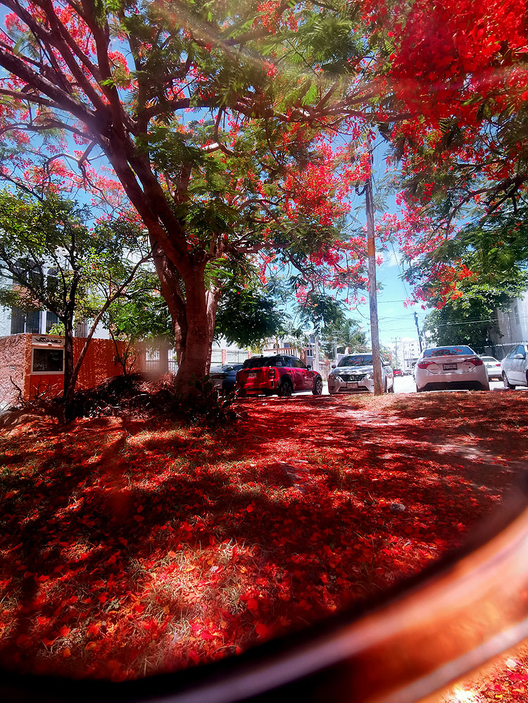 Растения – тоже радуют. Я думала делоникс (он же “огненное дерево”) к приезду сына уже отцветет, но он аж до самого его отъезда держался и до сих пор не собирается заканчиваться, так и цветет. Красивый – очень. Ну, и тоже куча разных. Фикусы вот показали, который корнями с веток растут, и разные другие пальмы.