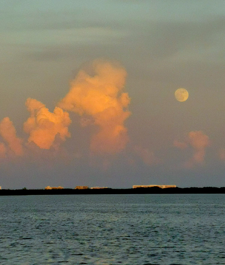А вот если закат – но прямо с того места, где я снимала рассвет, то никакого заката, конечно, не увидишь, но увидишь восход луны. И восход луны тоже в чем-то похож на рассвет, как по мне.