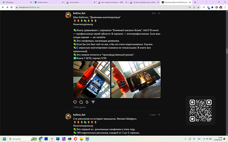 По причине “инстаграм без впн” завела себе Тредс (Threads). Это новая соцсеть от инстаграм, пока с малым количеством пользователей – поэтому полудохлая. Похоже на Твиттер, в котором я так и не прижилась. Но т.к. я старый адепт инстаграм – я, кажется, прижилась в Тредс, и пишу туда лытдыбр каждый день, хоть там и не лайкают. Когда можно будет изменить название блога (почему-то эта функция сейчас не срабатывает) – мой тредс будет называться “Книги под текилу” (я решила там писать про неплохие прочитанные книги, ну и когда очередную книгу порекомендовать не могу – просто заметки о жизни в Мексике).