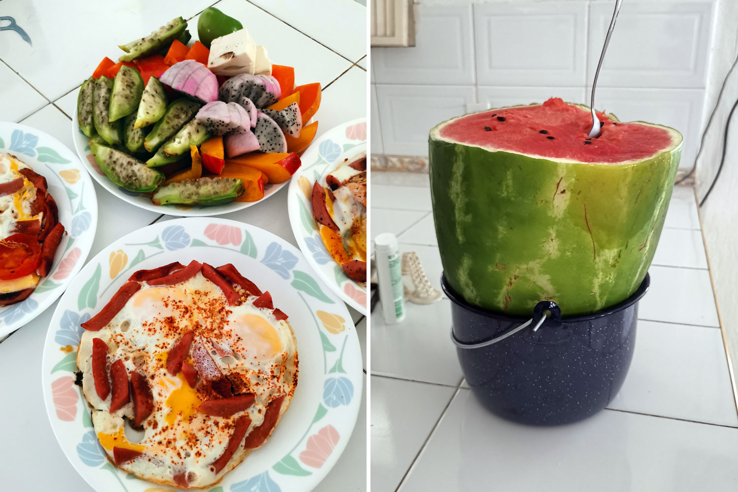 Антон как будущий повар очень ответственно подошел к дегустации местной еды. Забавно, но из местных экзотических фруктов ему больше всего понравились плоды опунции (здесь называются туна). Ну, и еще ананас на мангале. Ну, и тушеный нопаль ему зашел, как ни странно, я не ожидала. Но пробовал все, что давали.