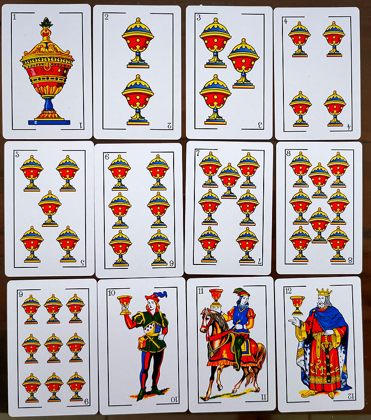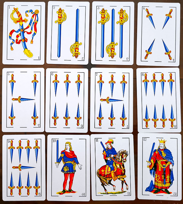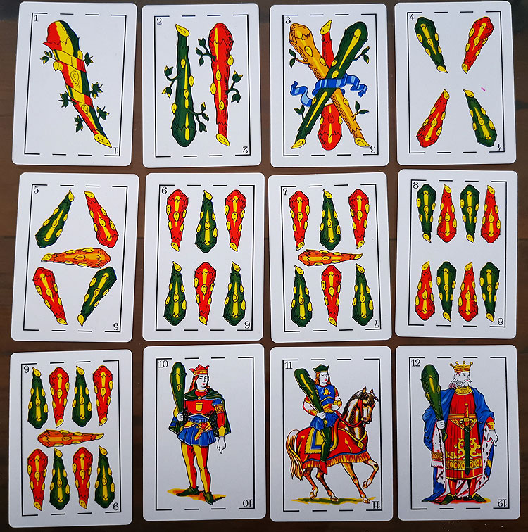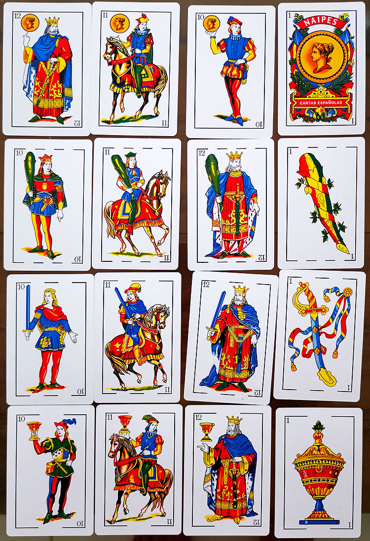 Как мы часто используем колоду не 52, а 36 карт, так испанцы используют усеченную колоду 40 карт (выкидывают восьмерки и девятки).