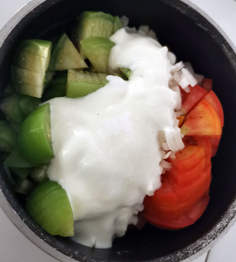 Красных помидоров взять в 3-4 раза больше, чем зеленых. Лука немножко.