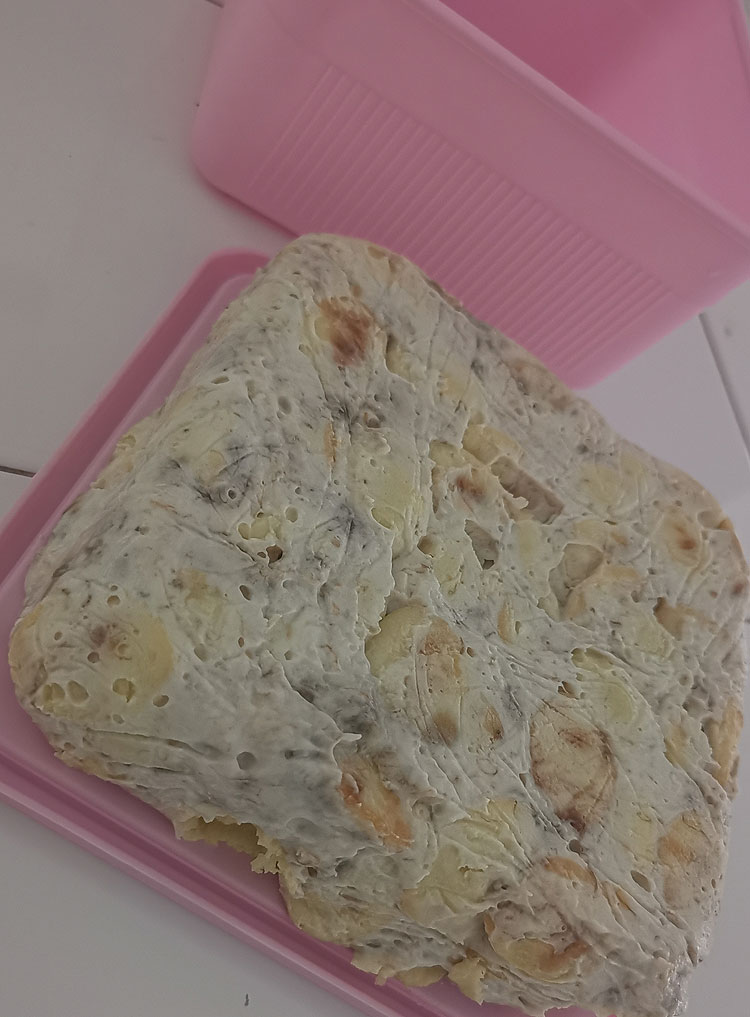 Кстати, отдельно небольшой лайфхак. Вот я приготовила маленький тортик, а как его удобно хранить в холодильнике? Я храню в перевернутом контейнере. Крышка служит “тарелкой для торта”, а собственно сама емкость контейнера – крышкой. (И удобно, что сверху на торт можно что-то поставить.