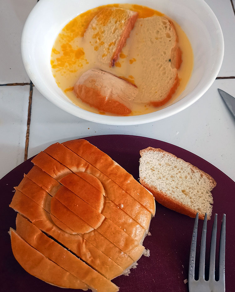 Одно из самых любимых "блюд" сына, если можно про это сказать "блюдо". Гренки по-французски.