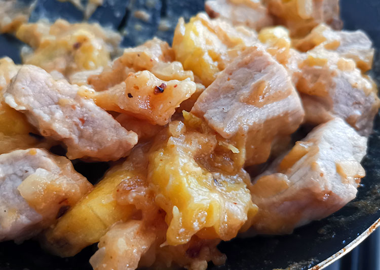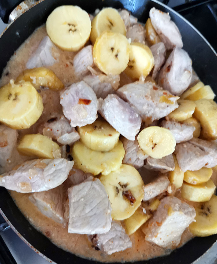 Вообще, было неплохо. Просто с картошкой лучше. А мясо с бананом лучше потушить по-другому.