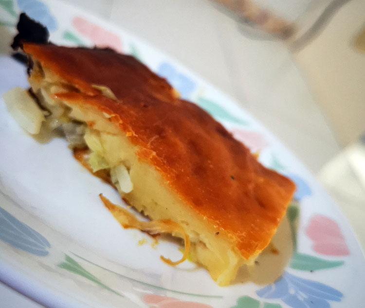 Кстати, на передний план перед рыбой вылез Капустный пирог. Изумительный вышел, хотя тесто не поднялось так, как обычно поднималось в Омске. Но это моя первая выпечка в Мексике -- посмотрю, что не так. Но по вкусу вышел совершенно изумительный.