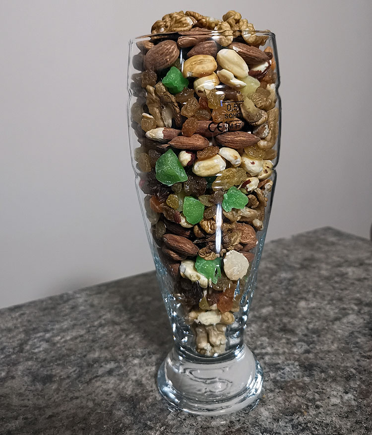 Аналогичный бокал с орешками может быть как закуска к вину (если как на фото там грецкий орех) или к пиву (если взять арахис, например).